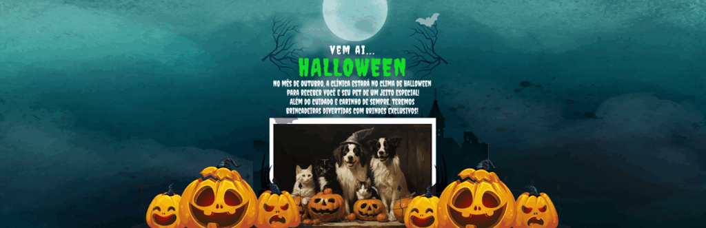 No mês de Outubro, a clínica estará no clima de Halloween para receber você e seu pet de um jeito especial! 👻✨